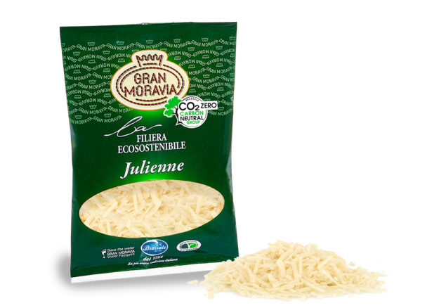 Gran Moravia Julienne 1000g Gran Moravia è un ingrediente insostituibile della buona cucina, capace di valorizzare tutti i piatti e rendere ogni ricetta ricca e raffinata, esaltandone il gusto e il profumo. È ideale sia per arricchire le insalate, sia per pizze, bruschette e altre originali ricette. Ingredienti: Latte, sale, caglio da coltura vegetale. Conservante: lisozima…